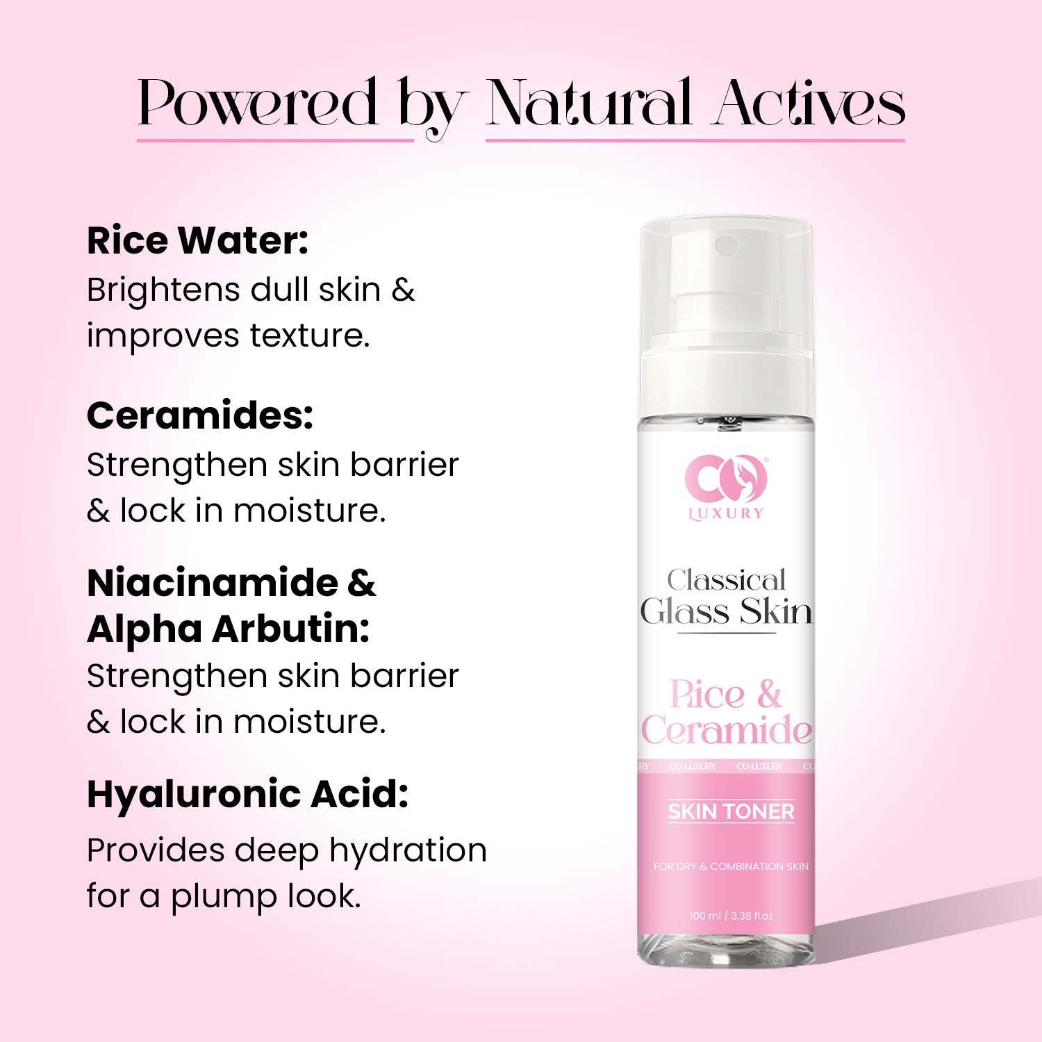 Rice Extract, Ceramides, Niacinamide, Glycerin, Sodium Hyaluronate, Allantoin, Aqua, Phenoxyethanol, Fragrance.