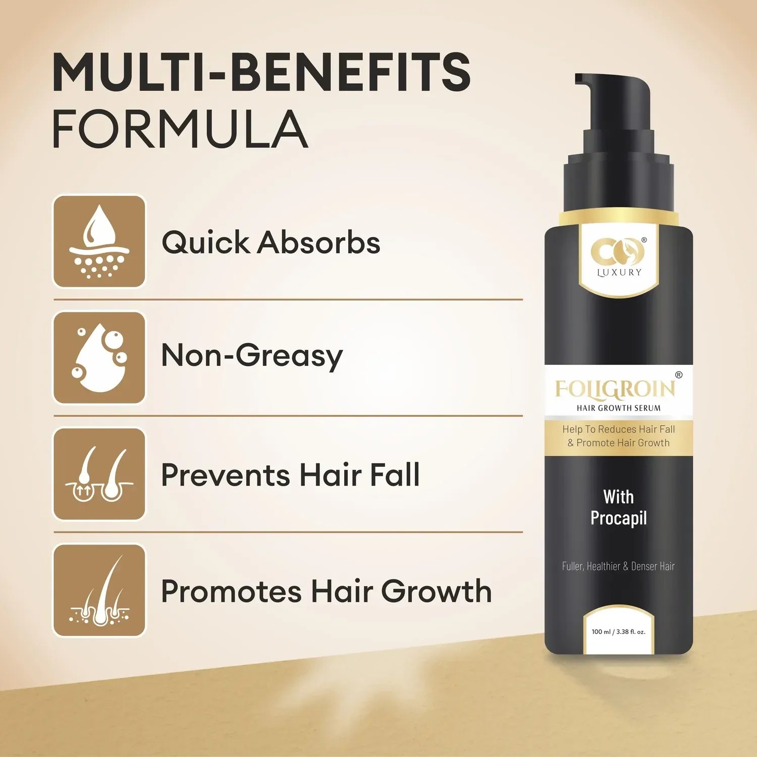 CO LUXURY Foligroin Hair Growth Serum with Procapil, AnaGain, Caffeine, Omega 3 & Rose Extracts - 100 ml